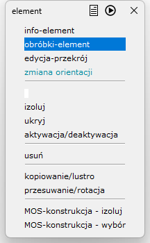 prawy przycisk myszy na podświetlonym elemencie (D-CAM) |