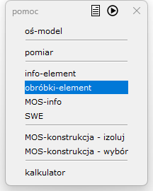 - nowa – pozwala dodać nową, dowolną obróbkę do elementu, z listy dostępnych makr obróbczych