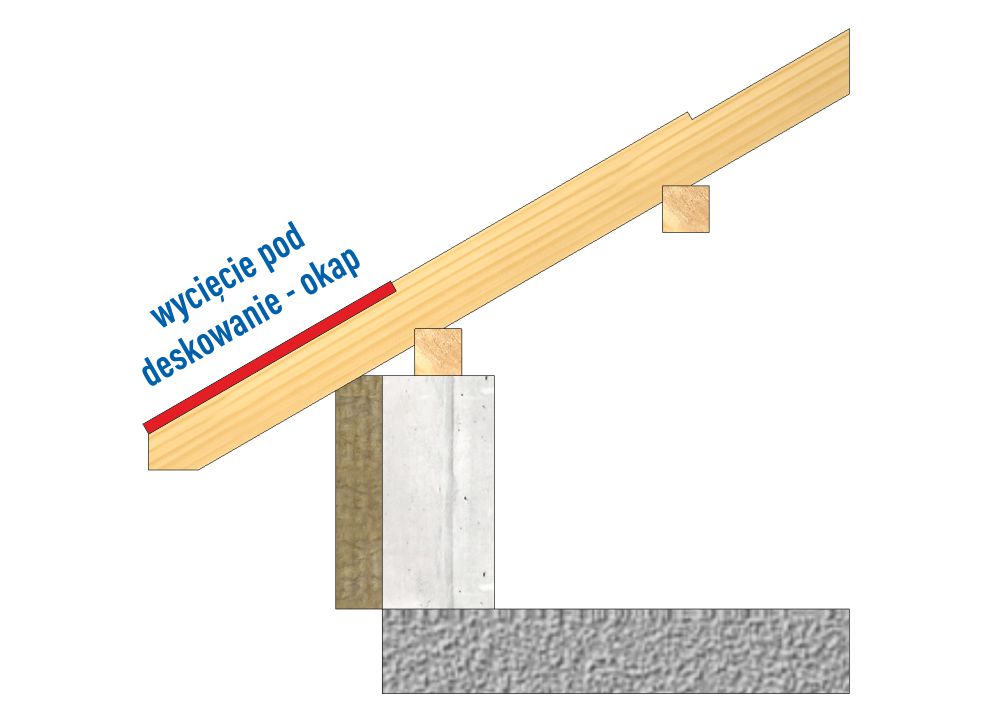 - wycięcie pod deskowanie – okap – definicja obróbki podcięcia krokwi pod deskowanie nakrokwiowe okapu