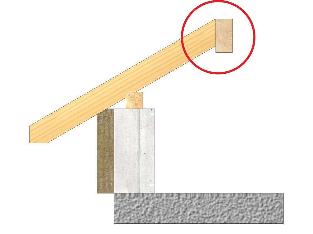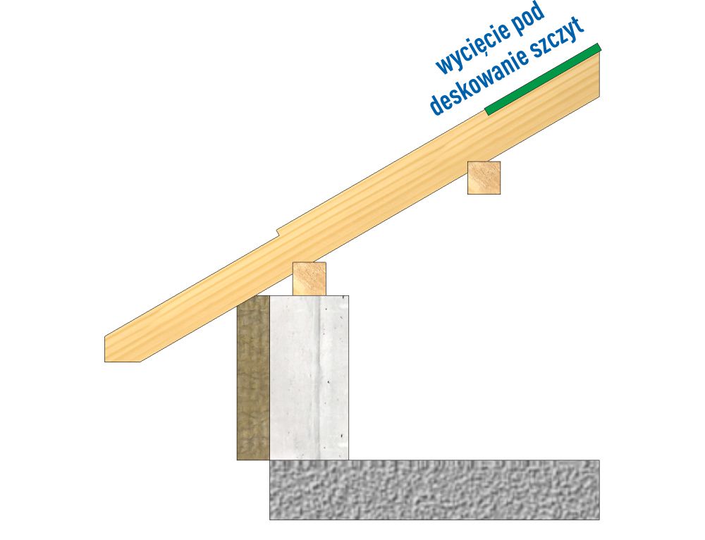 - wycięcie pod deskowanie – szczyt – definicja obróbki podcięcia krokwi pod poszycie dachu w okapie szczytowym.
